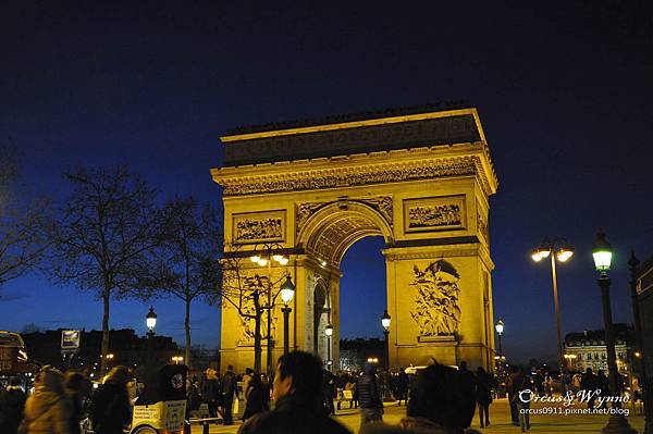 要拍攝凱旋門的最佳位置就在香榭大道上的分隔島,小小一塊地方擠滿了不少遊客排隊拍照